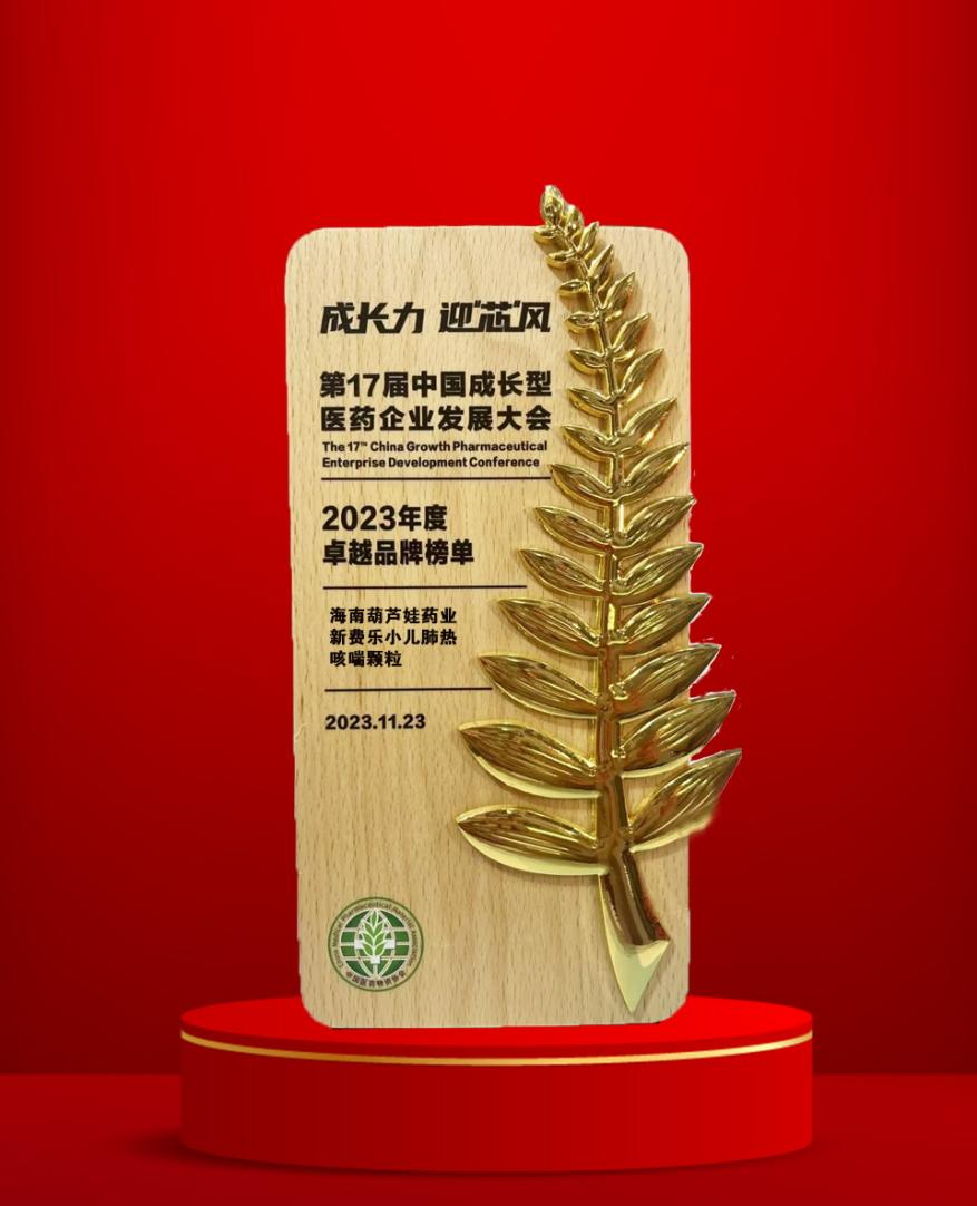 大会期间,一年一度的“金叶奖•2023年度医药行业风云人物奖”榜单重磅揭晓,918博天堂药业集团党委书记、董事长刘景萍荣耀上榜。金叶奖是为了表彰广大医药企业家或企业为行业茁壮发展做出的卓越贡献而设立的奖项,“金”象征着品质、品牌、影响力,“叶”象征着生命、健康、成长力。金与叶结合,有“敬业、兢业、竞业”之意。此外,集团黄金单品新费乐®小儿肺热咳喘颗粒凭借卓越的产品质量和品牌影响力赢得了行业、市场和消费者的肯定,获得了“2023年度卓越品牌奖”。